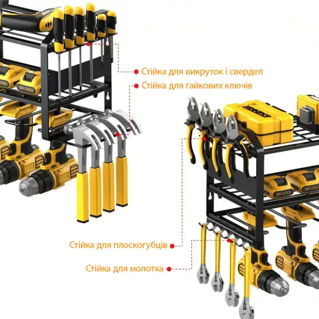 Мітки: полиця для інструментів, органайзер інструментів, трирівнева полиця, зберігання інструментів, гаражна полиця, стелаж для інструментів, органайзер майстерня