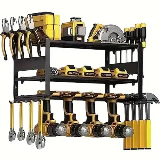 Полиця-органайзер для інструментів на 3 рівні – зручне рішення для майстерні, гаража чи будівельного майданчика. Вона допомагає підтримувати порядок, економити простір і забезпечує швидкий доступ до найважливіших інструментів. Завдяки трьом рівням полиця вміщує велику кількість ручного та електроінструменту, розхідних матеріалів і аксесуарів. Виготовлена з міцного металу/пластику (в залежності від моделі), стійка до навантажень і довговічна у використанні. Ідеально підходить для професійних майстрів, автомеханіків і домашніх користувачів, які цінують порядок і зручність у роботі.