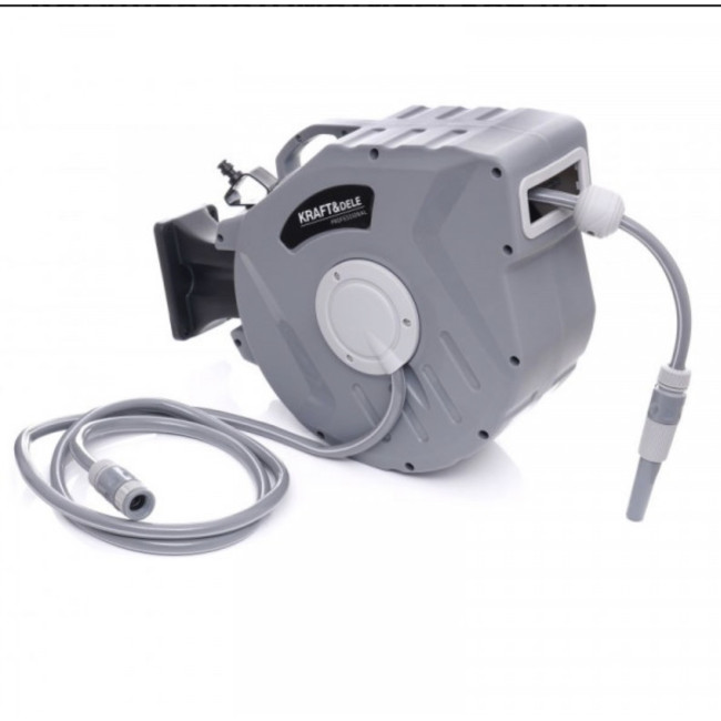 Автоматична котушка для садового шланга Kraft&Dele, модель KD2083, призначена для всіх, хто цінує комфорт. Барабан має механізм, який дозволяє автоматично змотувати шланг, а також замок, який дозволяє вибрати відповідну довжину. Завдяки надзвичайно зручній ручці та дуже малій вазі 3,5 кг ми можемо носити його без зусиль.