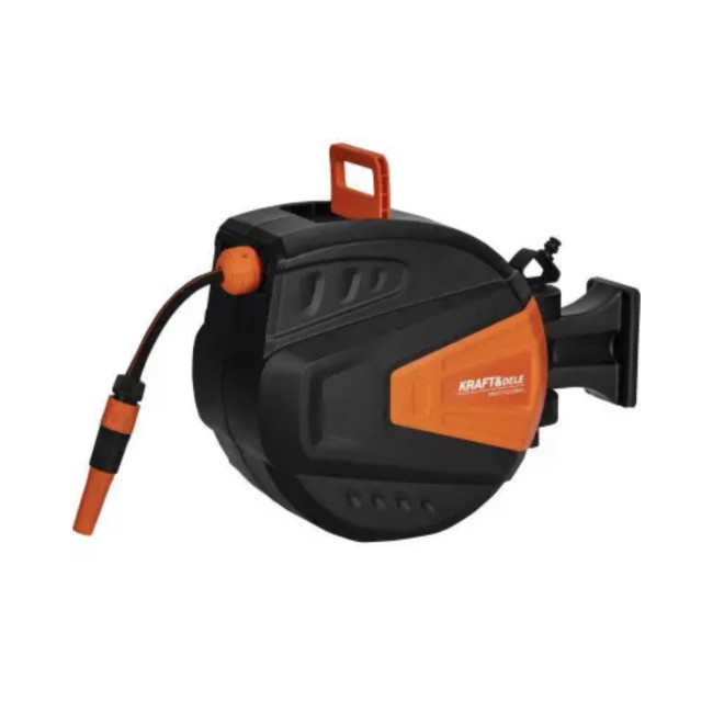 KD2153 — це функціональний автоматичний барабан для садового шланга марки KRAFT&DELE, розроблений для зручного та впорядкованого використання в саду. Система автоматичного змотування дозволяє швидко сховати шланг без заплутань і згинів, що значно покращує комфорт щоденної роботи.